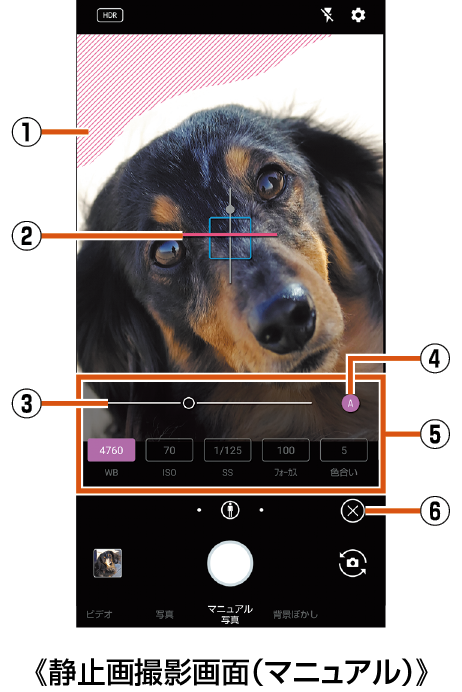 画面下部を左右にスライドして撮影モードを「写真」/「マニュアル写真」に切り替える