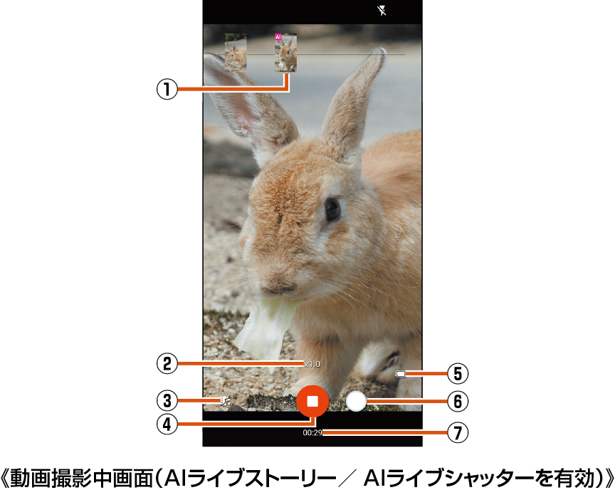 「AIライブシャッター」を有効にして動画撮影した場合は、自動で静止画を撮影します(⇒「カメラを設定する」)。