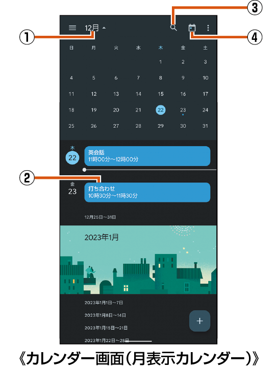 カレンダーの利用にはGoogleアカウントの設定が必要です。詳しくは、「初期設定を行う」をご参照ください。