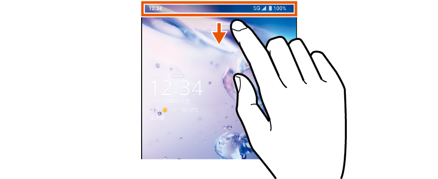 ホーム画面では、ステータスバー以外の位置から下にスライドしてもお知らせパネルを表示できます。