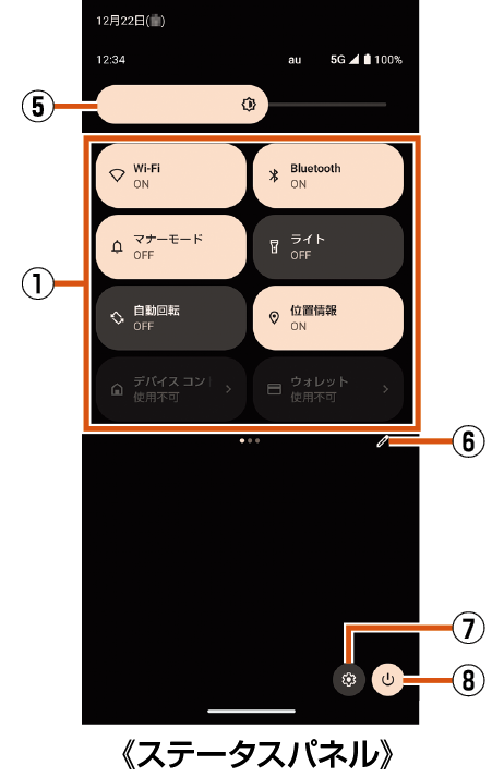 ステータスパネルでは、左右にフリックすると、ページを切り替えることができます。