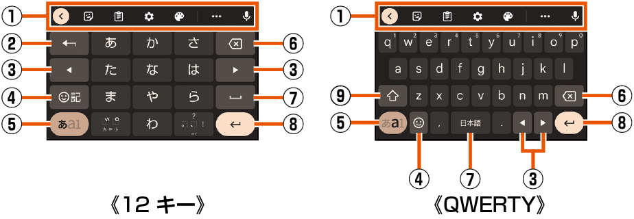 ここでは、「12 キー」と「QWERTY」の基本的な操作について説明します。操作方法などは、Gboardのアップデートにより、本書の内容から変更されることがあります。