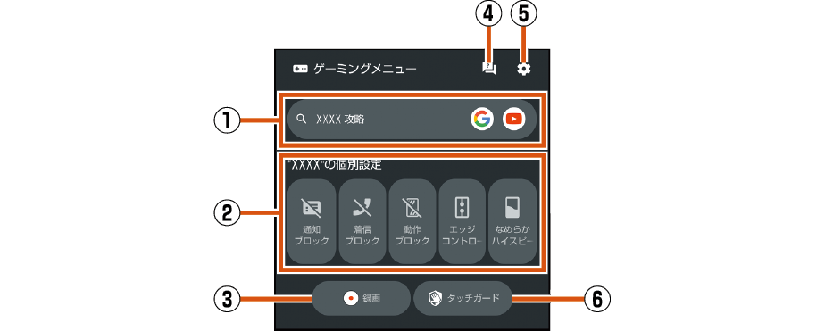 登録したアプリの起動中、ゲーミングメニューのフローティングアイコンを表示するかどうかを設定します。 フローティングアイコンをタップして表示されるメニューについて詳しくは、「フローティングアイコンから表示するメニューを利用する」をご参照ください。 |