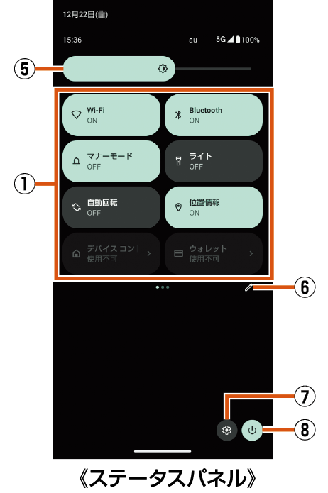 ステータスパネルでは、左右にフリックすると、ページを切り替えることができます。