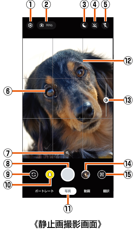 撮影画面の操作について詳しくは、「撮影画面の見かた」をご参照ください。