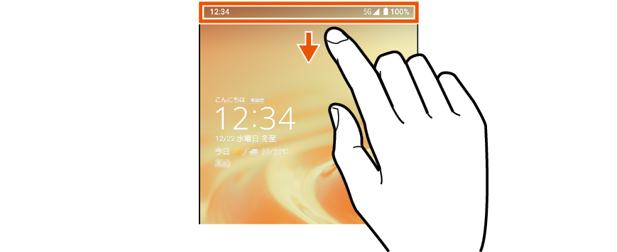ホーム画面では、ステータスバー以外の位置から下にスライドしてもお知らせパネルを表示できます。