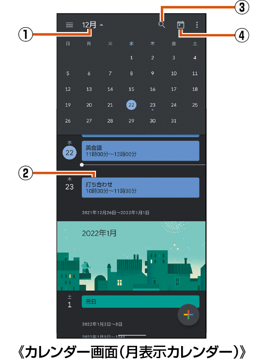 カレンダーの利用にはGoogleアカウントの設定が必要です。詳しくは、「初期設定を行う」をご参照ください。