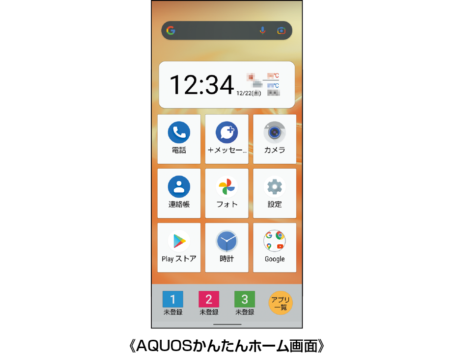 AQUOSかんたんホームは、ホーム画面(デスクトップシート)とアプリ一覧画面で構成されたホームアプリです。