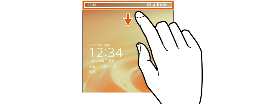 ホーム画面では、ステータスバー以外の位置から下にスライドしてもお知らせパネルを表示できます。
