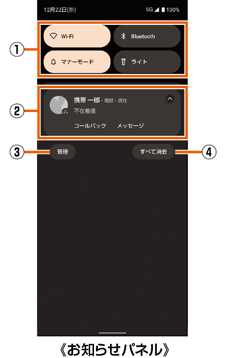 お知らせ/ステータスパネルでは、お知らせアイコンとステータスアイコンの確認や対応するアプリケーションの起動ができます。