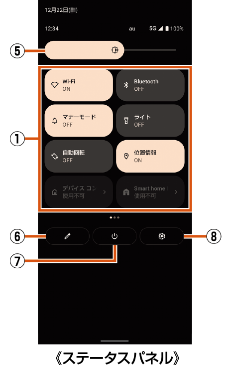 ステータスパネルでは、左右にフリックすると、ページを切り替えることができます。