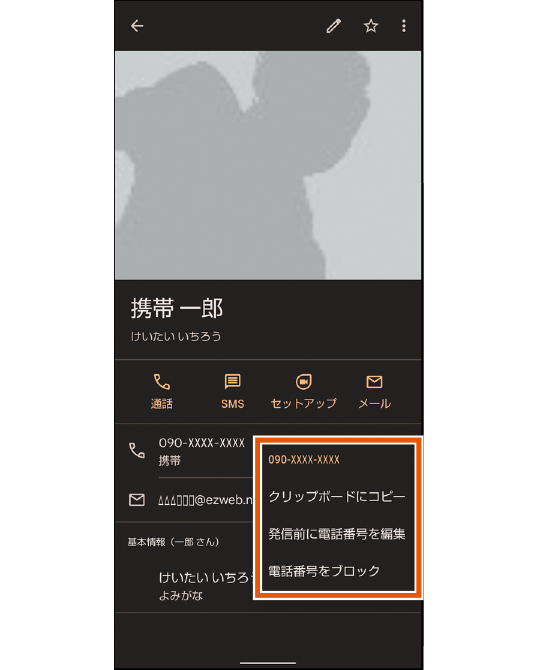 各項目やデータをロングタッチすると利用できるメニューが表示されます。