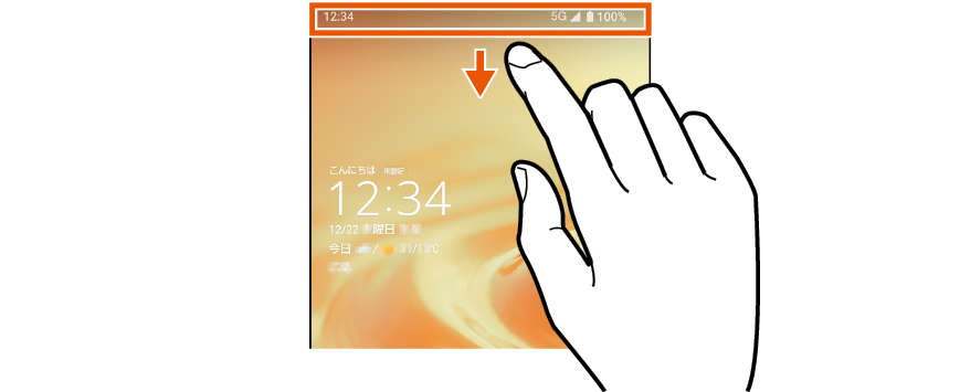 ホーム画面では、ステータスバー以外の位置から下にスライドしてもお知らせパネルを表示できます。