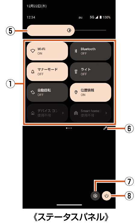 ステータスパネルでは、左右にフリックすると、ページを切り替えることができます。