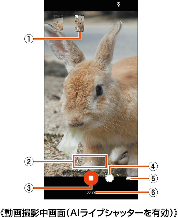 「AIライブシャッター」をONに設定して動画撮影した場合は、自動で静止画を撮影します。