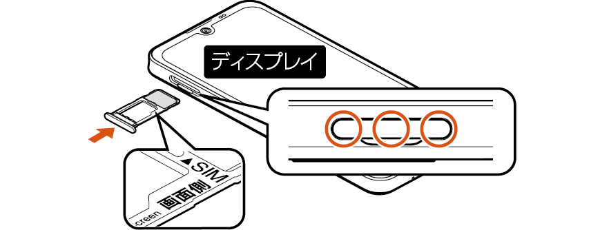 カードトレイの閉じかたについて詳しくは、「SIMカード/microSDメモリカードトレイの閉じかた」をご参照ください。