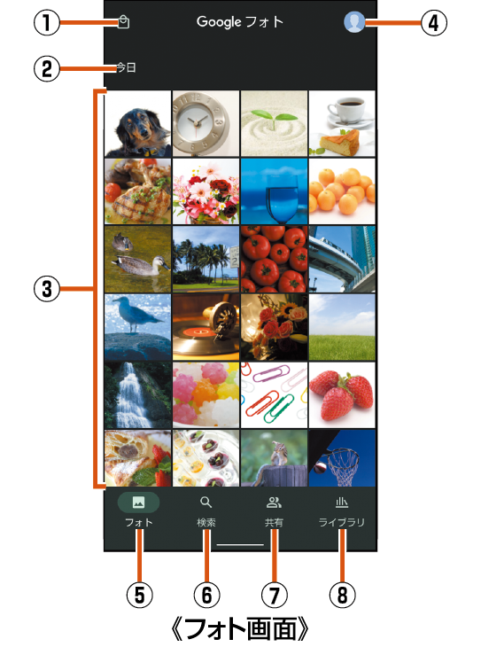 「フォト」アプリはPlay ストアより更新することができ、最新バージョンでは操作方法が変わることがあります。更新された場合は、フォト画面でアカウント設定のアイコンをタップ→[ヘルプとフィードバック]と操作し、内容をご確認ください。 |