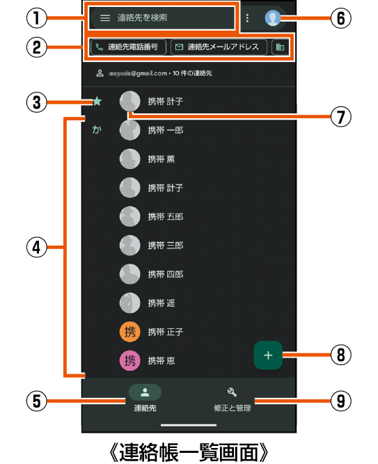 ホーム画面→「アプリ一覧画面」を表示→[連絡帳]→[連絡先]