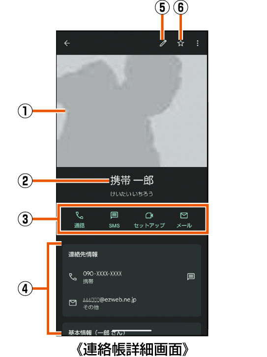 ホーム画面→「アプリ一覧画面」を表示→[連絡帳]→[連絡先]→連絡先を選択