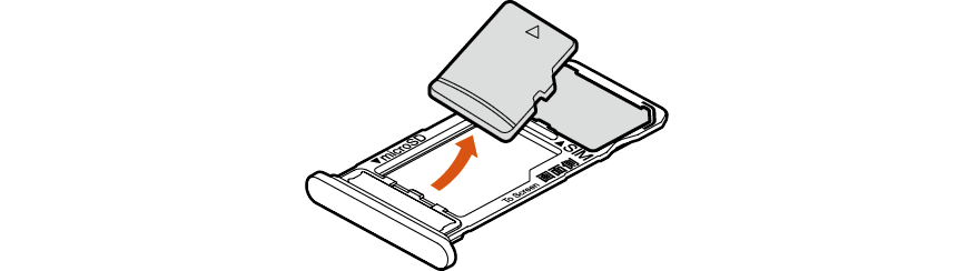 microSDメモリカードの端子(金属)面を下向きにして、SIMカード/microSDメモリカードトレイの突起部に押し当てながら取り付ける