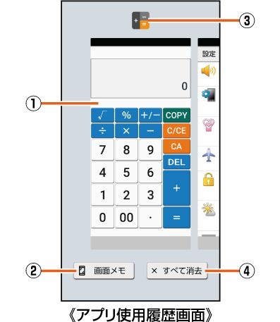 表示しているアプリの使用履歴画面を画像として撮影できます。