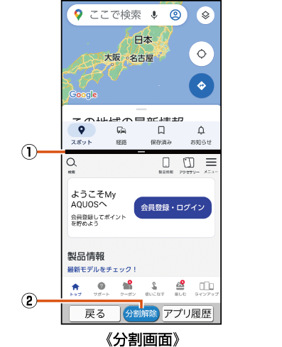 利用するアプリによっては、分割画面表示に切り替わらない場合や通常表示に切り替わる場合があります。 |