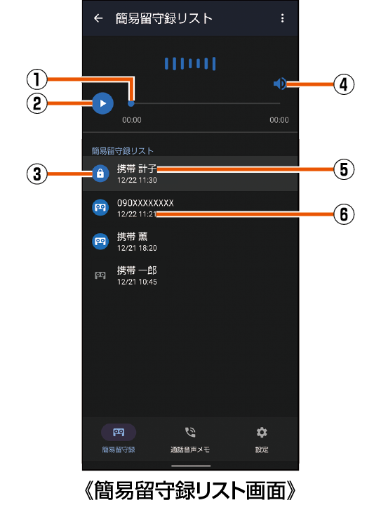 簡易留守録リスト画面の見かた