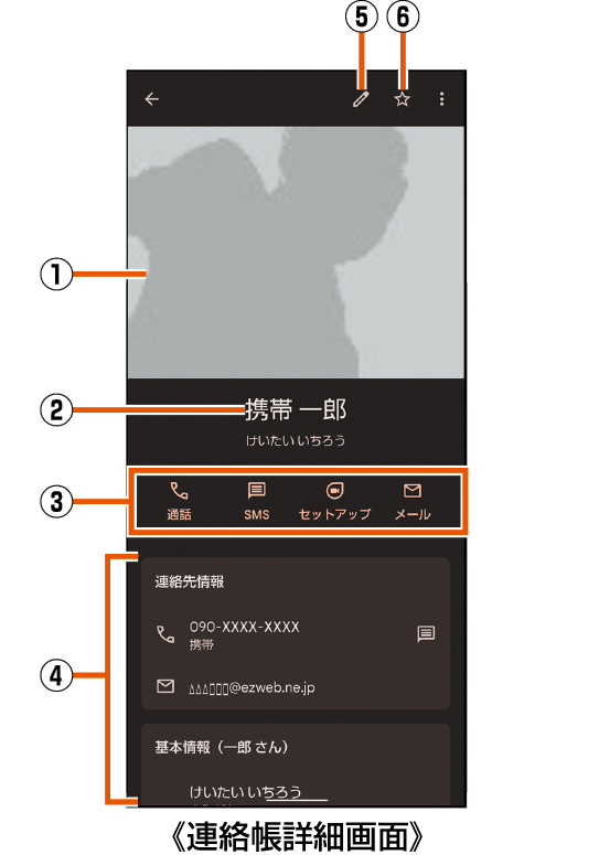 ホーム画面→「アプリ一覧画面」を表示→[連絡帳]→[連絡先]→連絡先を選択