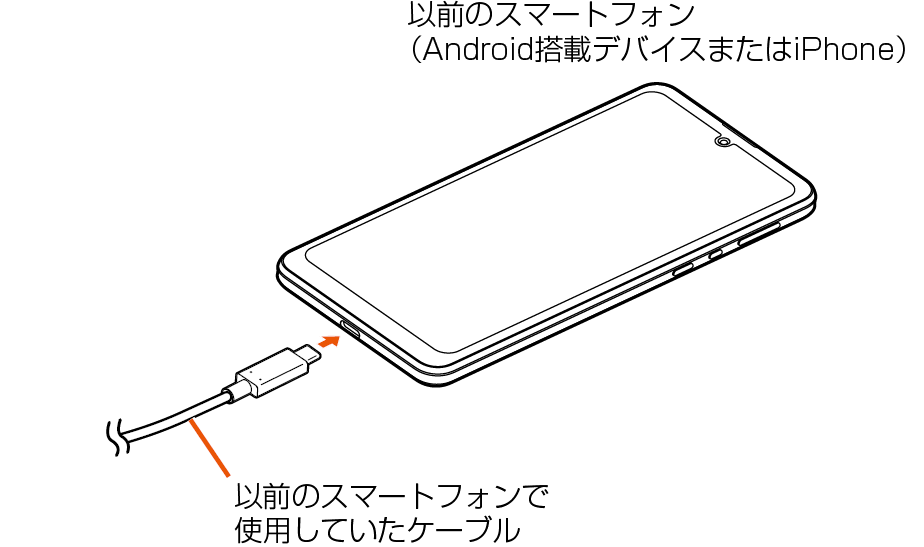 以前のスマートフォンで使用していたケーブルを、以前のスマートフォンに接続