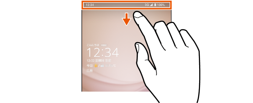 ホーム画面では、ステータスバー以外の位置から下にスライドしてもお知らせパネルを表示できます。
