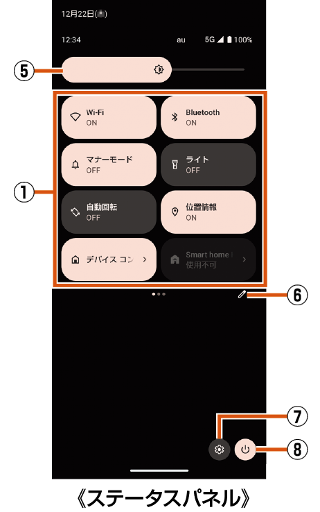 ステータスパネルでは、左右にフリックすると、ページを切り替えることができます。