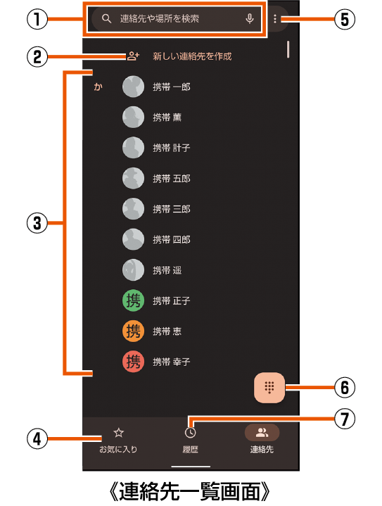 連絡先一覧画面の見かた
