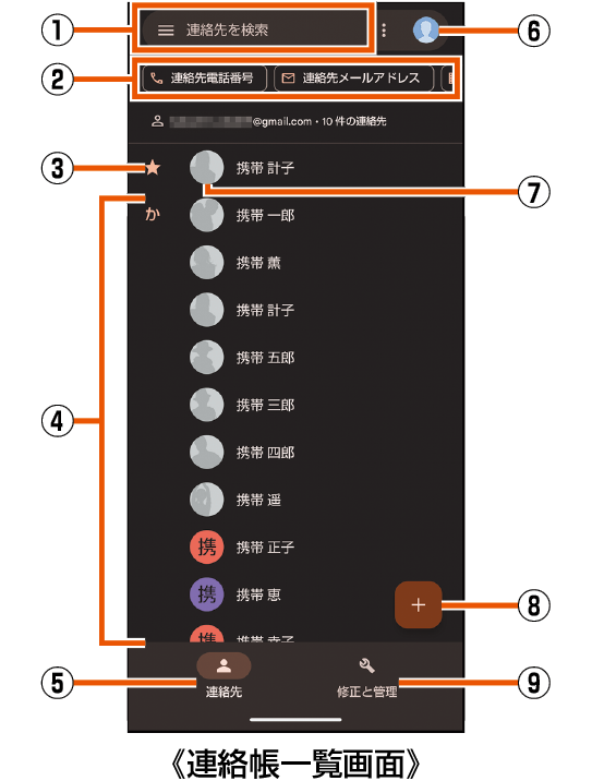 ホーム画面→「アプリ一覧画面」を表示→[連絡帳]→[連絡先]