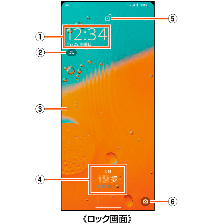 「ロック画面」の「ロック画面にテキストを追加」を設定している場合は、ロック画面に設定したテキストが表示されます。 |
