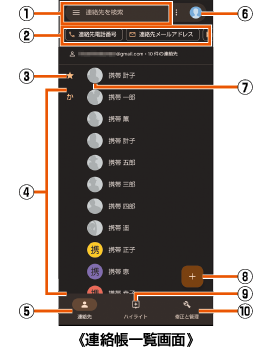 ホーム画面→「アプリ一覧画面」を表示→[連絡帳]→[連絡先]