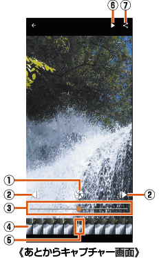 静止画の切り出しが行われ、保存されたデータをBluetooth®やメール添付などで送信したり、インターネット上のデータ共有サービスなどにアップロードしたりできます。