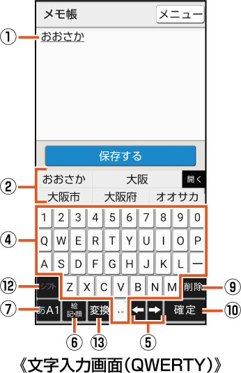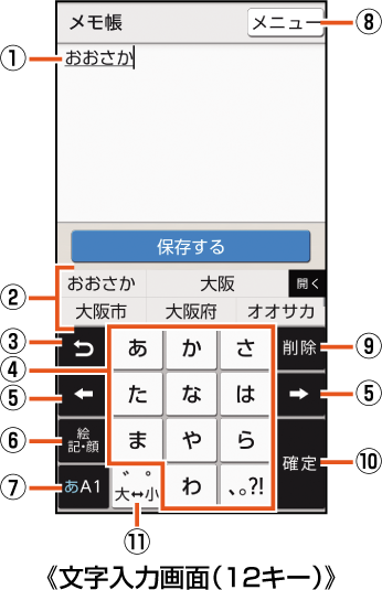 文字入力画面の見かた |