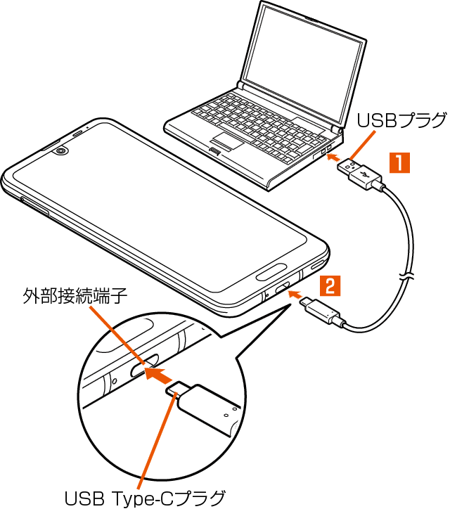 パソコンが完全に起動している状態で、USB Type-Cケーブル(市販品)をパソコンのUSBポートに接続