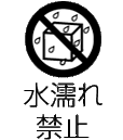 水がかかる場所で使用したり、水に濡らしたりしてはいけないことを示す記号です。 |