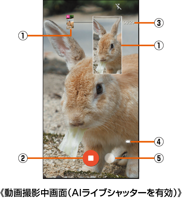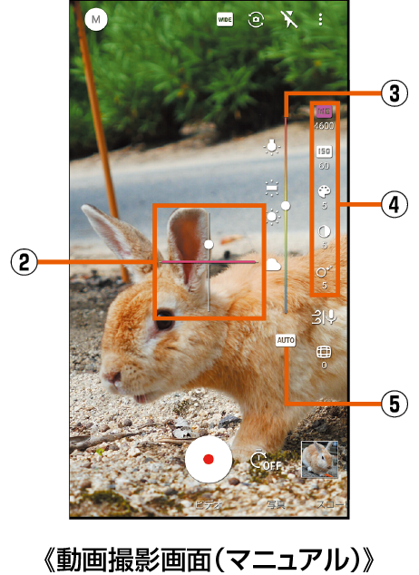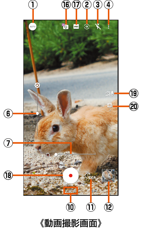 動画専用アウトカメラで撮影中の画面を例に説明します。