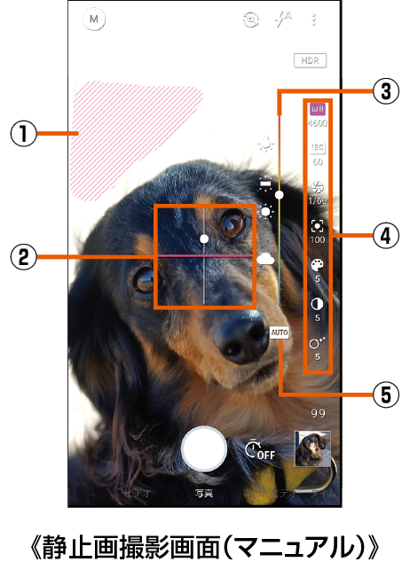 「オートHDR」をONに設定している場合で、HDR機能が動作中に表示されます。