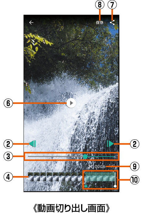 動画の中から静止画や動画を切り出して保存することができます。