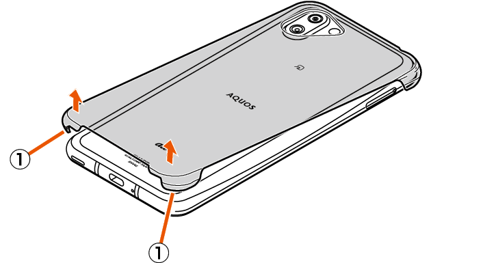の部分に指先をかけて、図の向きでクリアケース(試供品)を取り外す