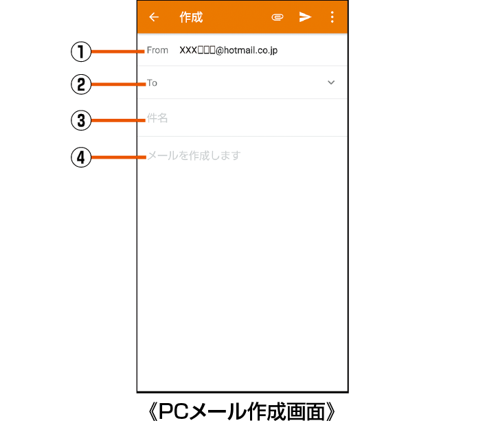 ホーム画面→「アプリ一覧画面」を表示→[ツール]→[PCメール]→[
