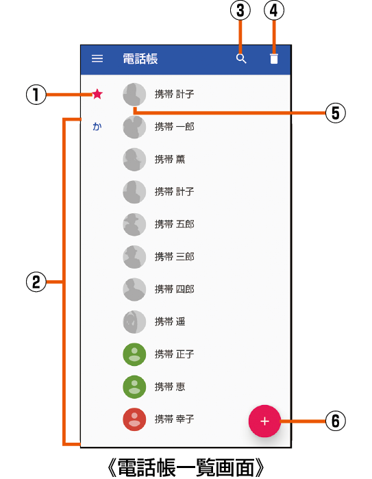 電話帳一覧画面の見かた