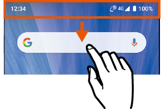 画面を上下にスライドすると、お知らせパネル/ステータスパネルを切り替えられます。 |