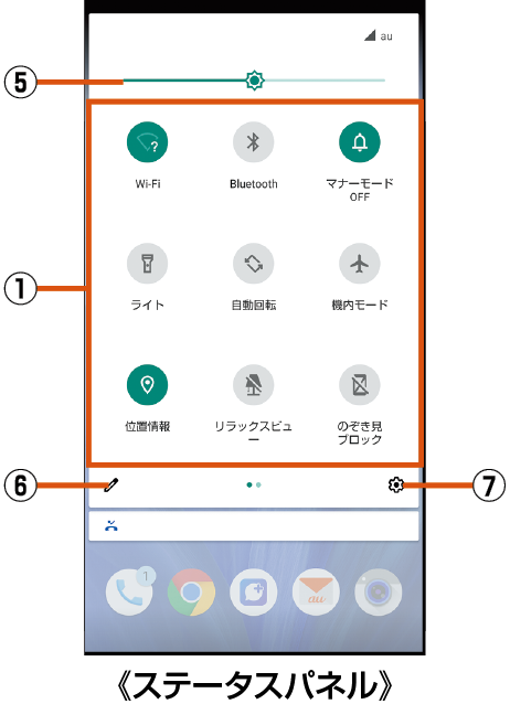 ステータスパネルでは、左右にフリックすると、ページを切り替えることができます。