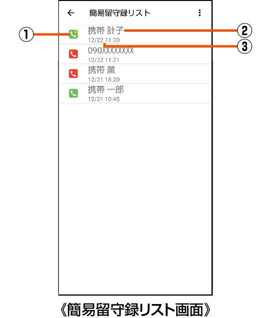 簡易留守録リスト画面の見かた