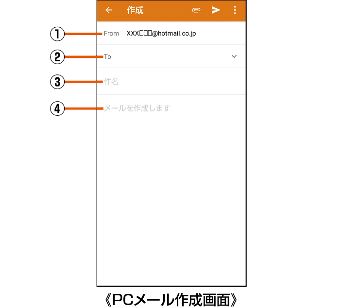 ホーム画面→「アプリ一覧画面」を表示→[ツール]→[PCメール]→[