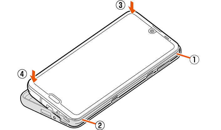 クリアケース(試供品)の取り付け/取り外しは、本体のディスプレイなどが傷付かないよう、本体/クリアケース(試供品)を手に持って行ってください。また、指や手で